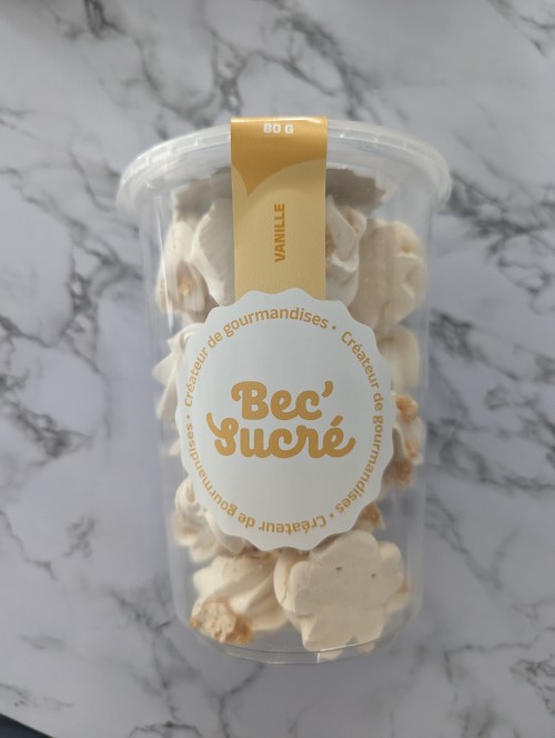 Toutes nos meringues sont préparées à l’aide d’ingrédients 100% naturels. Cette approche nous permet de vous proposer des pâtisseries de grande qualité. Nous utilisons évidemment le sucre, mais aussi les blancs d'œufs ainsi que les fruits lyophilisés certifiés biologiques. En choisissant les meringues de Bec'Sucré, vous encouragez directement les producteurs d’ici.
