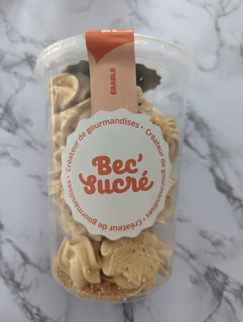 Nous vous offrons des meringues à saveur d’érable, de vanille, de café, de framboise, de chocolat, ou encore de bleuets. Dans le doute, il est aussi possible d’opter pour un mixte de différentes saveurs.